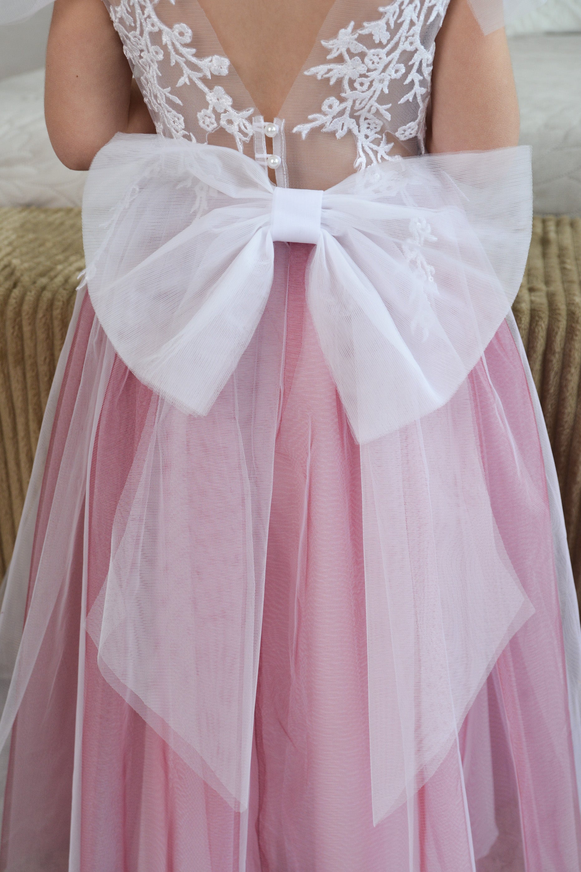 Dress have sewn in bow.